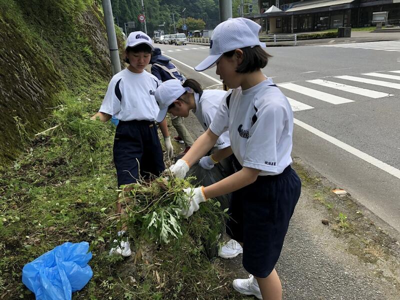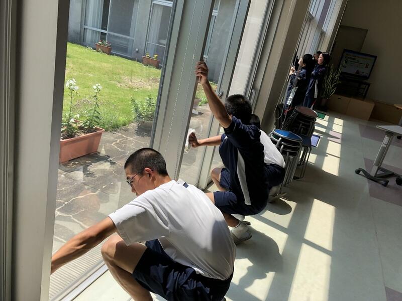 とてもよい天気で、生徒たちは汗を流しながら、取り組みました。