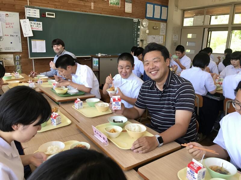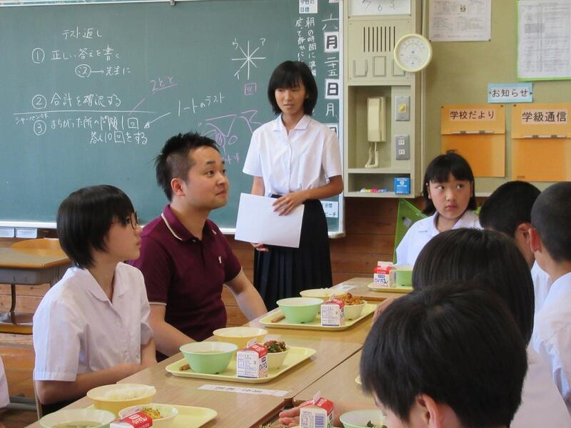 本日、わくわくランチサービスがありました。五ヶ瀬町教育委員会より秋本佳子さん、宮崎孔輝さん、松井慧さん、地域おこし協力隊の曽我部和さんが来てくださいました。 給食を食べながら、楽しく会話をしている姿が多くありました。