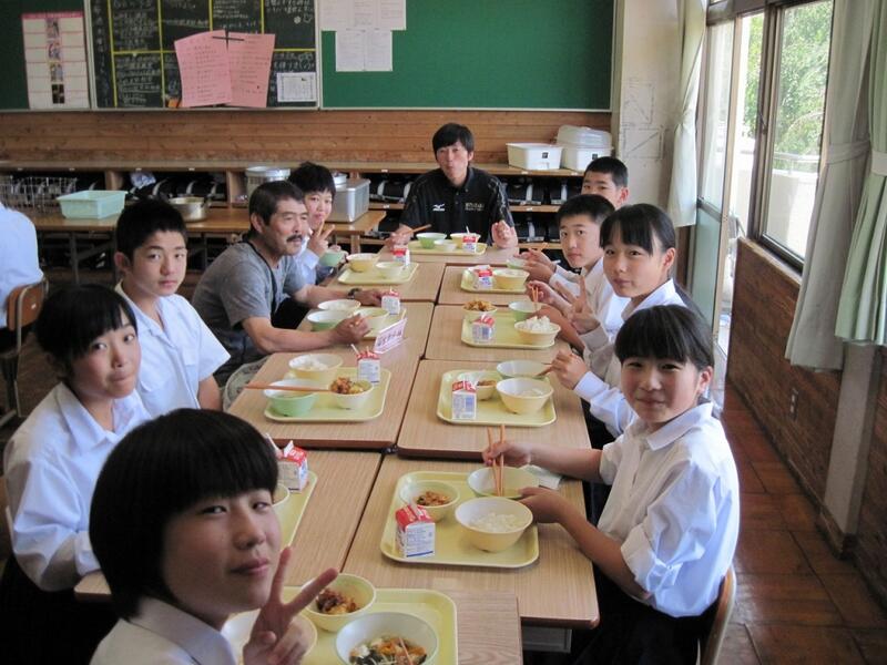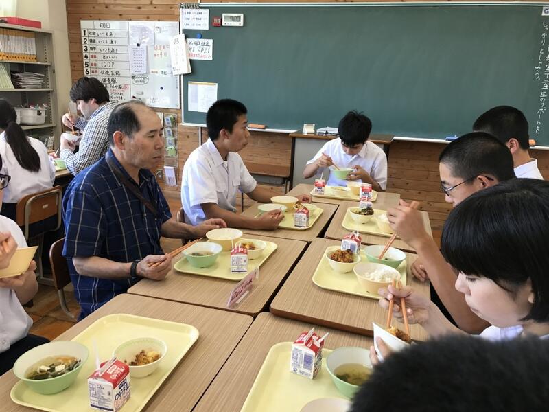 本日、わくわくランチがありました。伝統芸能を教えに来てくださっている岡田さんや篠原さん、風力発電所の西村さん、しいたけ農家の甲斐さん、宮崎日日新聞社記者の草野さんが来てくださいました。