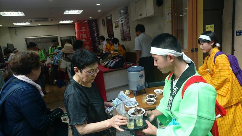 関東五ヶ瀬町人会や国会議員の江藤 拓 様からも激励していただき、商店街で人々が次々に足を止めて、五ヶ瀬町の伝統芸能や商品(乾しいたけ、釜炒り茶)を見てくれました。