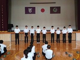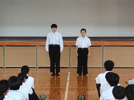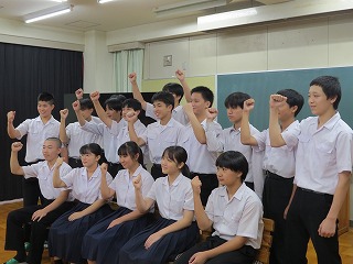 次に、生徒会長から「応援してくれるすべての人に感謝の気持ちを持ち、プレーや姿勢でその気持ちを表現してください。」との激励の言葉がありました。