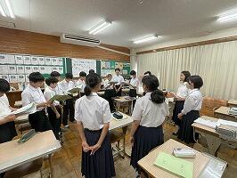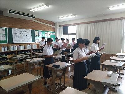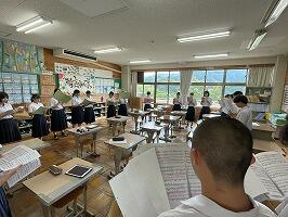9月18日(木)の5時間目に全校音楽②が実施されました。図書室で声出しを行い、各パートに分かれて練習を行いました。