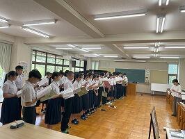 本日の5時間目文化発表会に向けた全校音楽が実施されました。