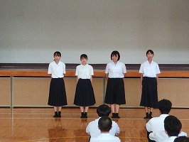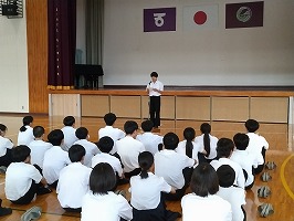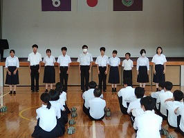 9月17日(水)に地区中学校秋季体育大会の推戴式がありました。県大会出場がすでに決まっている女子バレーボール部以外の部活動生を対象に行いました。