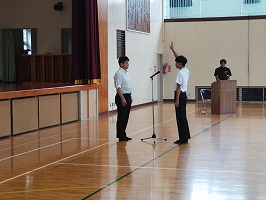 まず、それぞれの部活動のキャプテンが抱負を語り、男子バレーボール部キャプテンが選手宣誓を行いました。