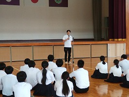 そして、今回からの新たな試みとして、地域の方々から部活動生にお言葉をいただく場を設定することとなり、そのトップバッターとして男子バレーボール部外部指導者の佐伯様をお招きいたしました。佐伯様からは「短期目標と長期目標を決めること、コミュニケーションをとること、学校生活を大切にすることを頑張ってください。」と部活動生としての心構えについてお話をいただきました。