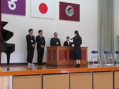 修了式では各学年の総務委員長が修了証を受け取りました。