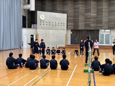 昼食をはさみ、午後からはクラスマッチ!じんとりやバドミントンを行いました。バドミントンではリーグ戦を行い、トーナメント方式で決勝戦進出を目標に各ペアが頑張りました!決勝戦は全員で応援しました。