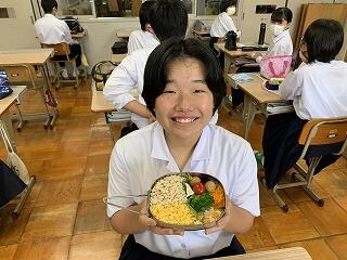 生徒の感想では「日頃、感謝を伝える機会がないのでよかったです」「小学校よりレベルアップしたお弁当が作れました」「前日に準備をしたり、当日の朝早起きをして作ったりするのが大変でした」「朝起きられず親におかずを作ってもらったので次はしっかりと早起きしたいです」などありました。