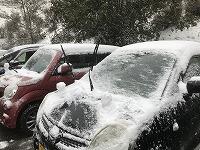 職員の車の上にいつの間にか雪だるまらしき物が登場していました。