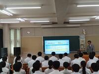 6/27(金)の5・6時間目に私立高校説明会が行われました。本校の2・3年生を対象に、5校の私立高校の先生方に、お話をしていただきました。それぞれの高校で学べること、卒業後の進路等についてお話下さいました。生徒も真剣に話を聞きながら、自分のこれからのことを考えるきっかけになったようです。