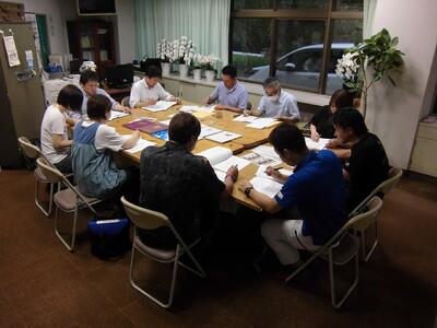 先日、校長室で行われた実行準備委員会では、記念誌の内容や表紙のデザイン選定など検討が行われました。