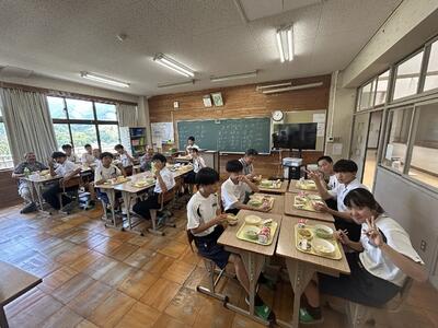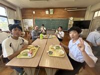 そして、本日の給食はわくわくランチでした!伝統芸能を教えてくださる2名の地域の方が3年生の教室に来てくださり、一緒に給食を食べました!