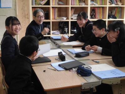 3月9日㈪に、1年生の総合的な学習の時間に五礎会(いっそかい)の方との交流会を行いました。