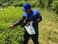 お茶の葉は、3枚ほど新芽がついたやわらかい部分を摘んでいきます。