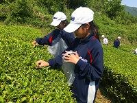 少し暑かったですが、1時間半ほど2年生全員で楽しくお茶摘みをしました。