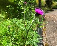 青空の下、お茶の緑も美しく、「すてきに背高の薊」もきれいに咲いていました。