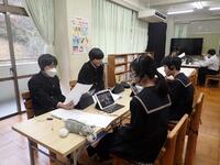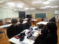 現在、2年生は小学校でのG授業や豊かな体験活動での学びを生かし、来年の五ヶ瀬町へのGDP提言へ向けて調査研究を行っているところです。提言について、それぞれのタブレットを使用しながらグループごとにズームでディスカッションを行いました。