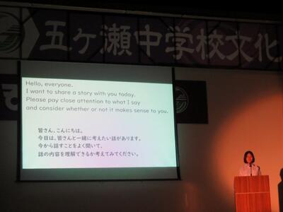 西臼杵郡中学校英語暗唱弁論大会に出場した3名が夏休み前からの練習の成果を発揮し、堂々と発表しました!