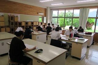 受験に向けて3年生は午前中自主的に学校に来て学習を行う勉部に参加しています。課題をしたり、分からない所を先生方に質問をしたりと頑張っています。