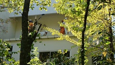 本校の体育館裏に大きなハチの巣があり、学校活動に支障を及ぼしていました。