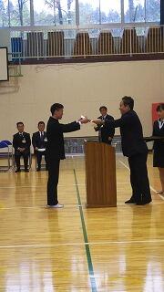 本日、4校時に2学期終業式が行われました。まず、漢字コンクール、読書感想文の表彰があり、男子バレー部より日豊カップの校納がありました。