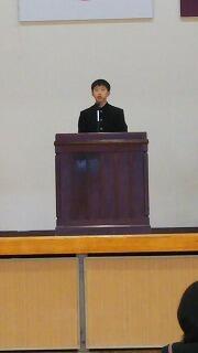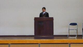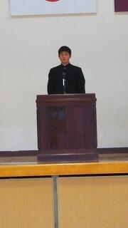 生徒代表2学期の反省では、各学年の代表生徒が2学期を振り返って反省と3学期の目標について発表してくれました。
