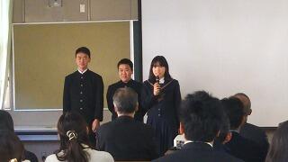 本日、GDP(五ヶ瀬デザインプロジェクト)表彰式が行われました。3年生が10月に発表した提言の中から、5名の受賞がありました。受賞者を代表して、最優秀賞者があいさつをしました。これから、町をよりよくしていくためにつなげていけるといいですね。