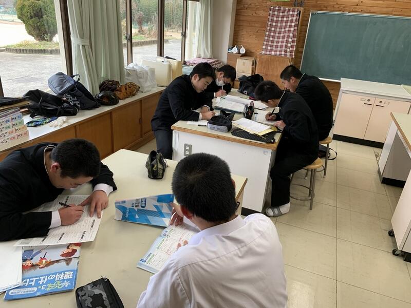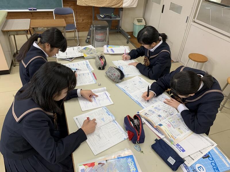 雪が舞う寒い中、3年生が冬休みも学校に来て勉強を頑張っていました。分からないところは、友達や先生に聞きながら黙々と問題を解いていました。志望校合格に向けて頑張ってくださいね。