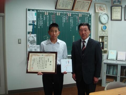 本日、第3回九電みやざき小中学生絵画コンクール表彰式が本校で行われました。優秀賞1名、佳作1名の2名が表彰されました。副賞も頂き、満足の様子でした。