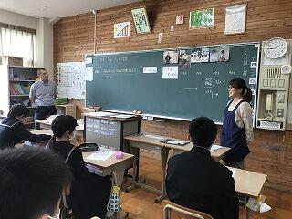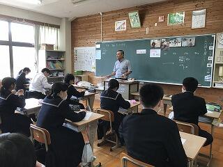 本日、山本健太先生が10年目を経過しましたので研究授業を行いました。学活の授業で進路学習でした。これまでの14年間を振り返り、これからの将来について考える授業になっていました。途中で特別講師として国家試験を見事に合格し、看護師免許をもっている養護教諭、工藤香織さんに来て頂き、ありがたいお話をして頂きました。これからの人生に生かされる授業になりました。