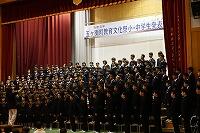 五ヶ瀬町の4つの小学校と五ヶ瀬中学校、五ヶ瀬中等教育学校の6校が集まり合唱、合奏を披露しました。