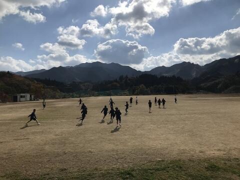 本日の昼休み、保体委員会の企画『全校生徒でけいどろをしよう!!』を実施しました。警察は3年生男子で、その他の生徒は捕まらないようにグランド中を逃げ回りました。一度捕まっても、仲間が何度も助けに行きました。少し肌寒かったですが、良いインターバルの練習になり、どの生徒もハーハーと息があがっていました。全員が笑顔になり、楽しい時間となりました。今後も、さらに保体委員会の違う企画を木曜日に行う予定です。