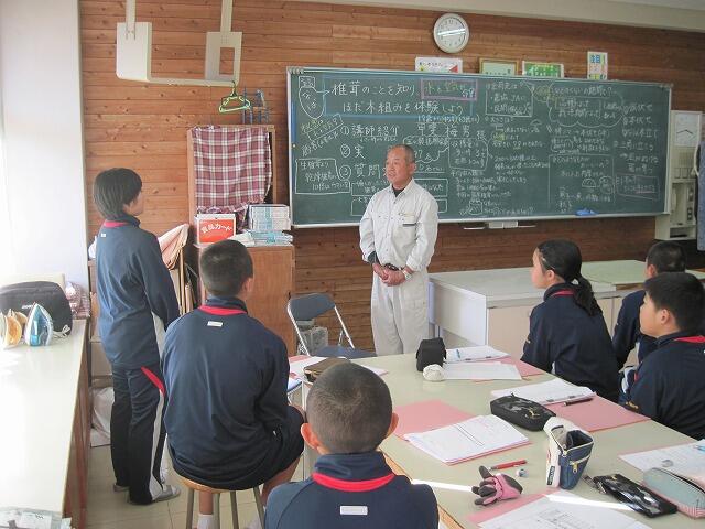 その後は、椎茸について梅男さんにたくさんの質問をしました。大変分かりやすく説明してくださったので、生徒たちはうなづきながらメモをとりました。これから、椎茸の生長記録をつけるのがとても楽しみです。