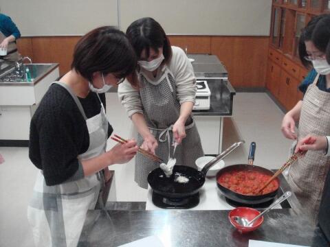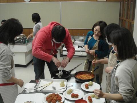 教育振興会の那須会長のご挨拶の後、早速料理が始まりました。みなさん、楽しそうに笑いが起きながら和やかに完成に近づいていきました。
