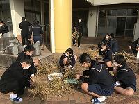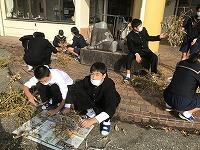 本日、大豆の収穫をしました。枝豆もおいしくいただきましたが、ついに大豆が完成しました。2年生で収穫し、1.1㎏を収穫することができました。まだ、さやに残っているものもあるので、合わせると2㎏あるかもしれません。半分はきな粉にしようと考えています。どうせするなら石うすでやりたいので、石うすを持っている方がいらっしゃたら五ヶ瀬中学校まで連絡してください。(担当まで)もう半分は2月の節分にまこうかな?でも、食べ物を投げたらいけないので考え中です。