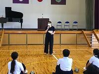 校歌斉唱のあと、各担当の先生方から、夏休みの過ごし方などについてお話をして