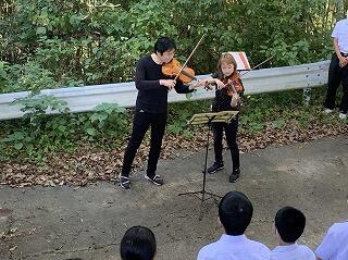五ヶ瀬の大自然の中で奏でるバイオリンの音はとても美しく、生徒たちも感動していました!