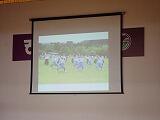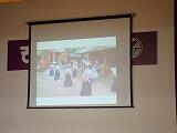 オリエンテーションの様子 昨年の祇園大祭、夏季例大祭の様子を視聴 団七踊りを実演