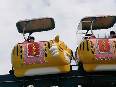 仕方が無いので、ゾウとトラ(の乗り物)で遊んでいるところをどうぞ。