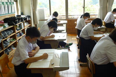 1学期の終業式で全校生徒に、「何のために学ぶのか」について自分なりに答えを見つけ、見つけた答えのもと夏季休業期間の家庭学習および2学期からの学校生活に取り組んでほしい旨話をしました。テストに臨む姿から、きっとひとりひとりしっかりとした答えを見つけ、これをもとに夏休みを有意義に過ごしていたんだろうなと思いました。
