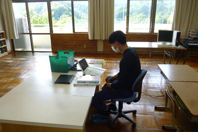昨年度から、五ヶ瀬町よりひとり1台のタブレットPCを導入していただいております。日頃の授業での活用(調べ物に使ったり、活動の記録に使ったり)や、外部指導者によるオンライン授業には取り組んでおりましたが、通常学校で行っている授業をオンライン形式で行うのは、今回が初めての試みとなります。