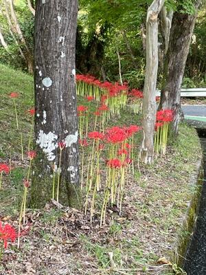 ここ数日、もみじ坂を彼岸花が彩るようになってきました。植物はすごいですね、誰に言われることなく、その時期になればきれいな花を咲かせて私たちを楽しませてくれます。