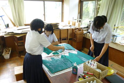 本校では毎年、文化発表会において3年生が劇を披露してくれます。今年も劇に向けて着々と準備が進んでいるようです。本日(9月15日)の5・6校時に、劇の練習や劇で使用する小道具づくり等に一生懸命取り組んでいました。