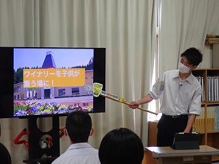 2年生を4つのグループに分け、それぞれのグループに2名ずつ宮崎大学の学生の皆さんに入っていただき、生徒の発表に対して意見をいただいたり新たなアイディアをいただいたりしました。