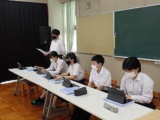例年では体育館で行いますが、今回は各教室でzoomを用いて行いました。