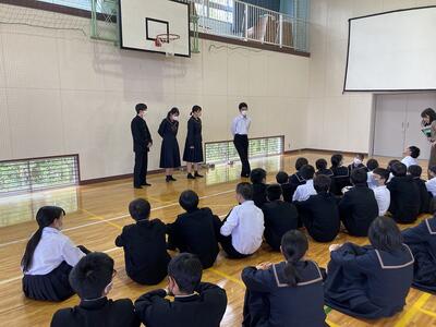 10日、新入生に向けて2,3年生から五ヶ瀬中での生活についてのオリエンテーションが行われました。