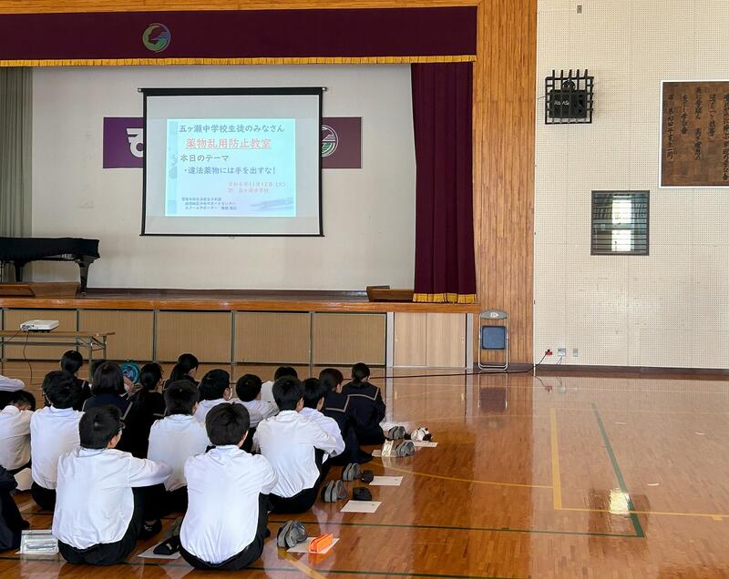 本日6時間目に全校生徒対象で「薬物乱用防止教室」が行われました。延岡警察署の興梠さんにお越しいただき、様々な違法薬物の種類や人体への影響について話していただきました。