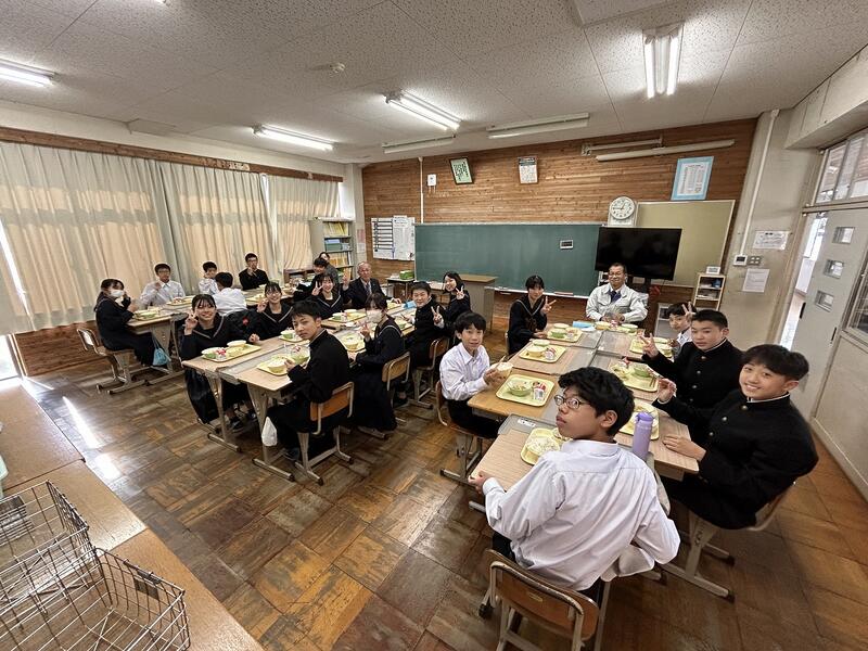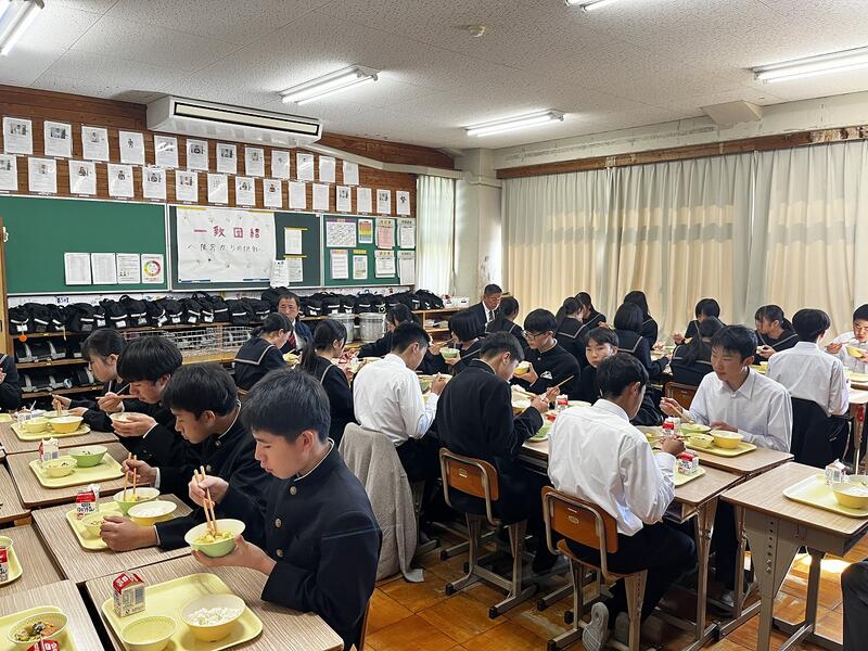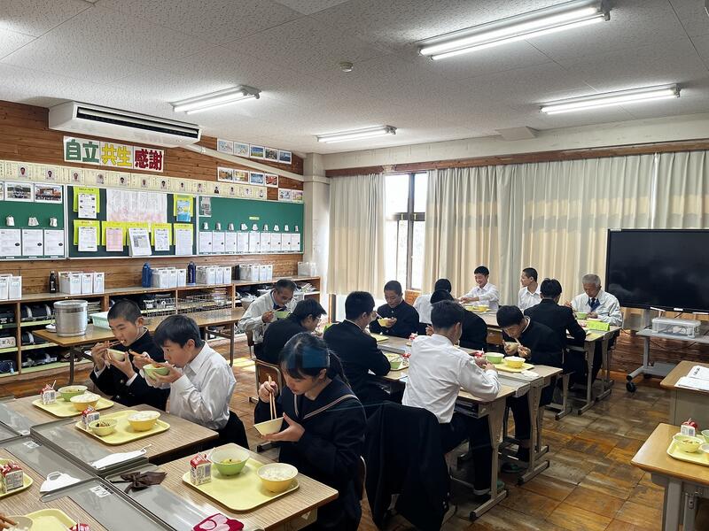 各学年の生徒たちと五ヶ瀬中学校自慢のおいしい給食を食べていただけたと思います。