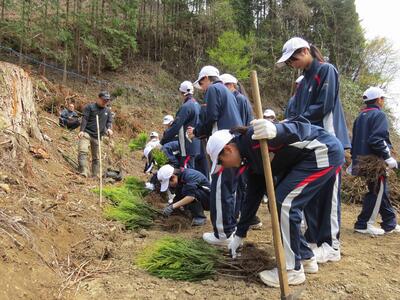 4月18日(金)に、五ヶ瀬中学校10周年記念行事の1つ「植樹」が行われました。